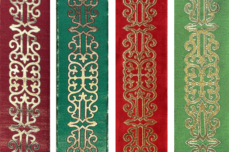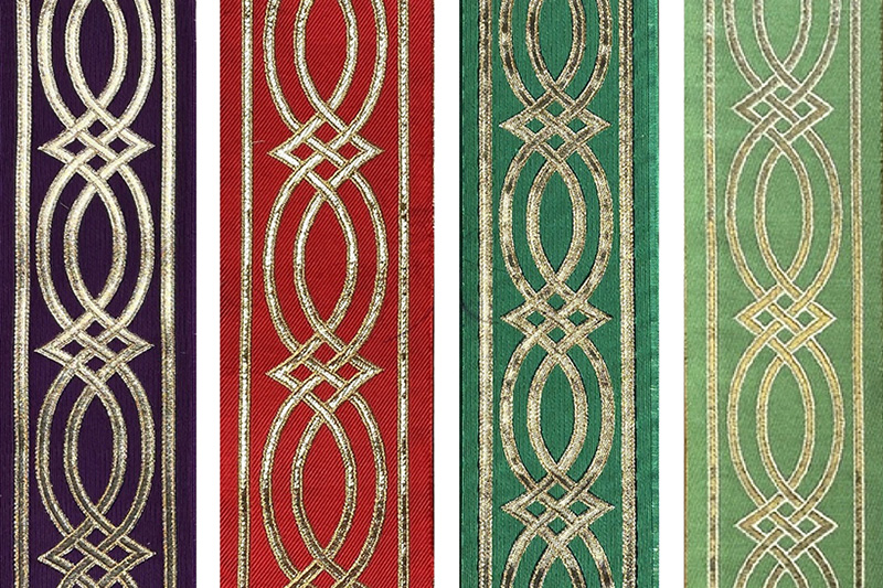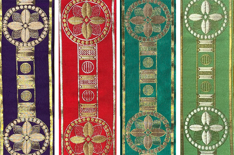 私どものお作りいたしますストラには、十字やバンドを縫い付けるタイプと、刺繍を施したタイプの2種類があります。